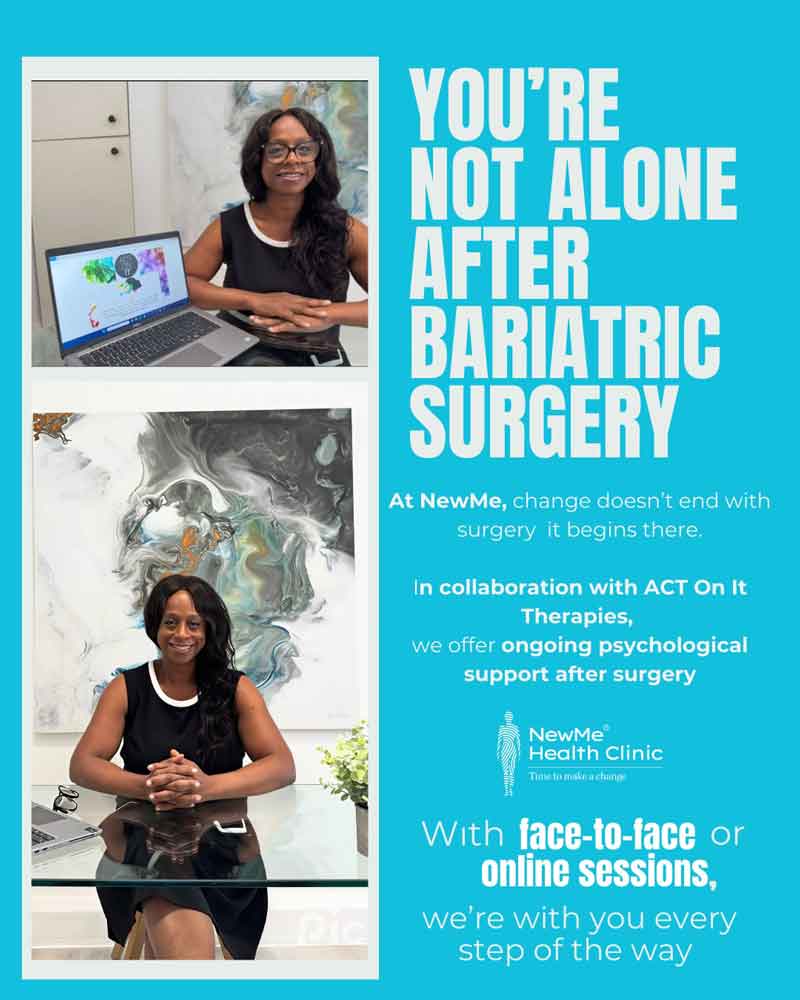 At NewMe, we know obesity is a complex journey — and surgery is just the beginning. That’s why we’ve partnered with ACT On It Therapies, based in the UK and Canada, to offer our patients ongoing psychological support after surgery. 💙